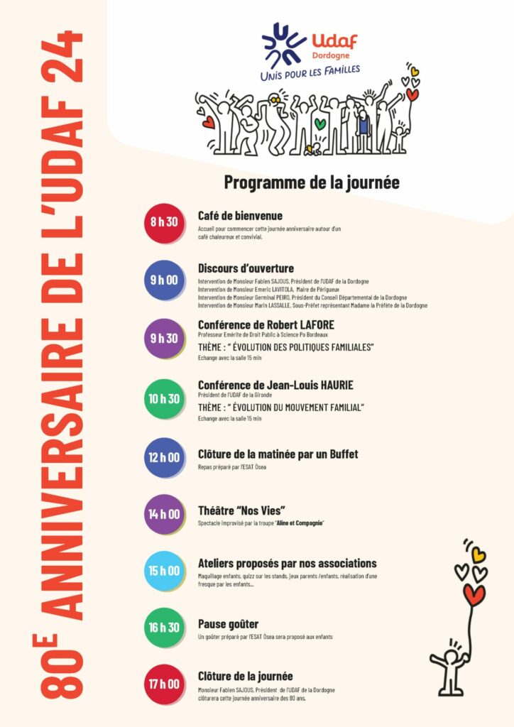 L’UDAF de la Dordogne a le plaisir de vous convier à son 80e anniversaire qui aura lieu le