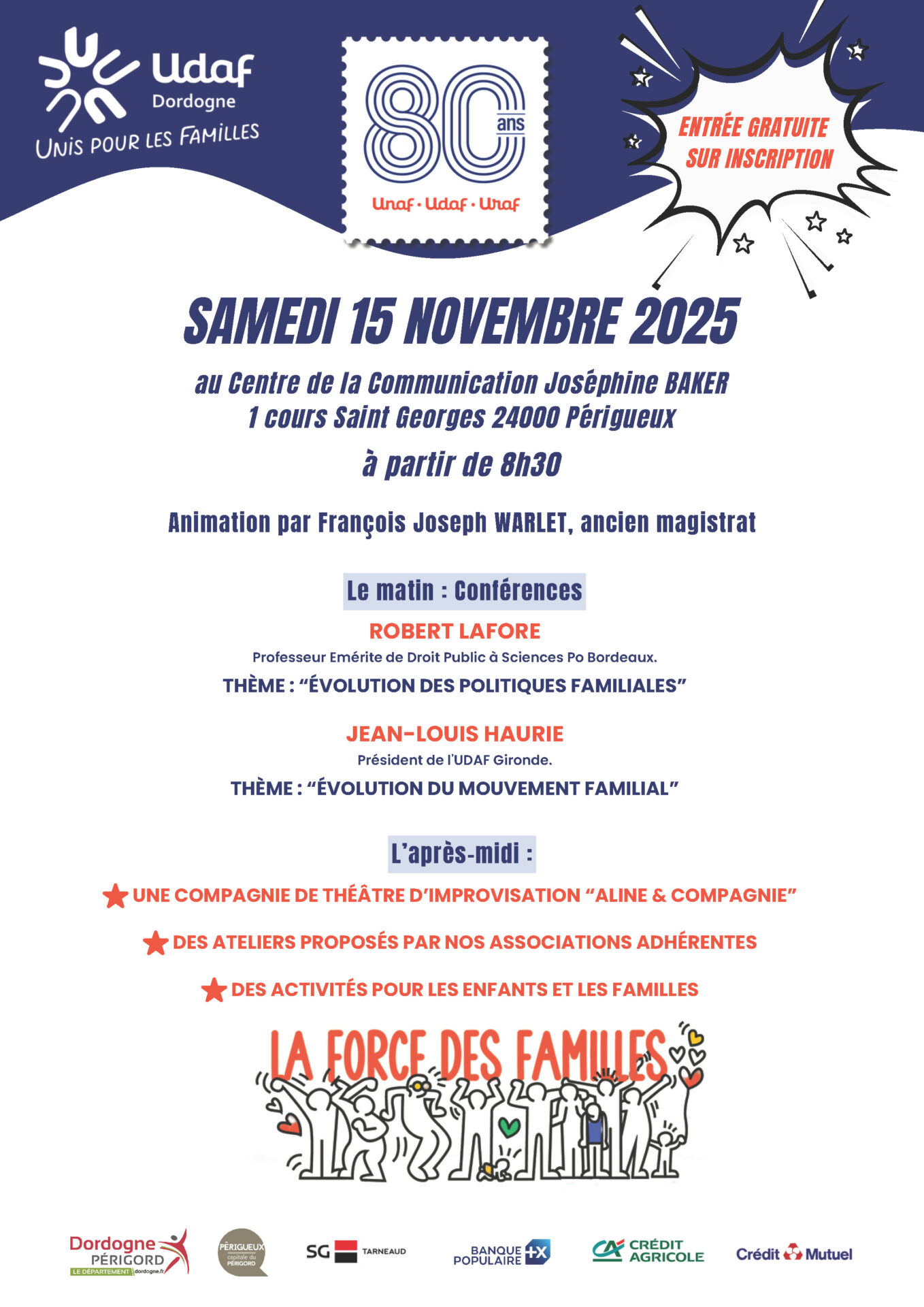 L’UDAF de la Dordogne a le plaisir de vous convier à son 80e anniversaire qui aura lieu le